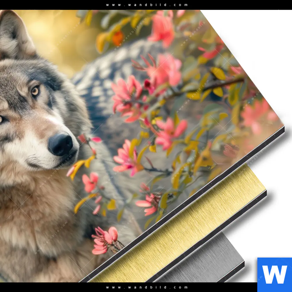 Aluminiumbild gebürstet | Wolfsblick im Frühling | Rund