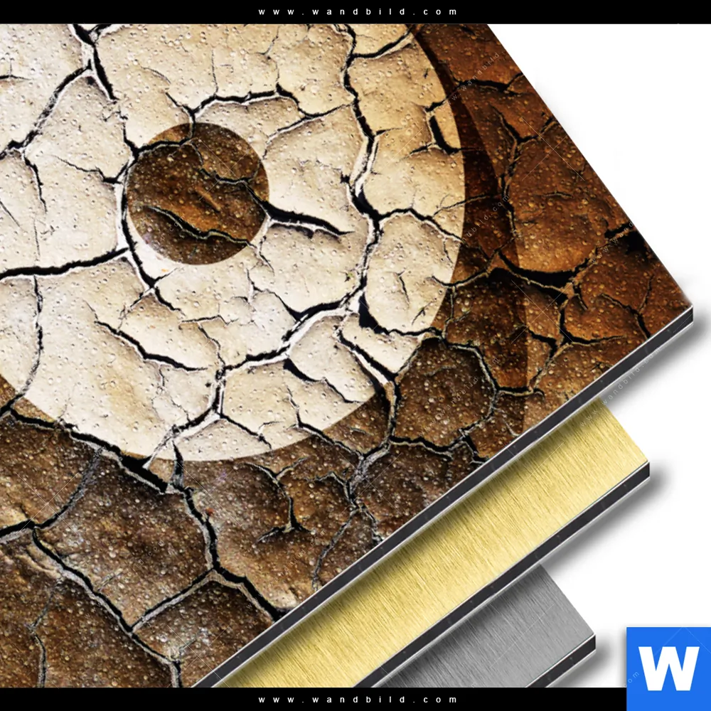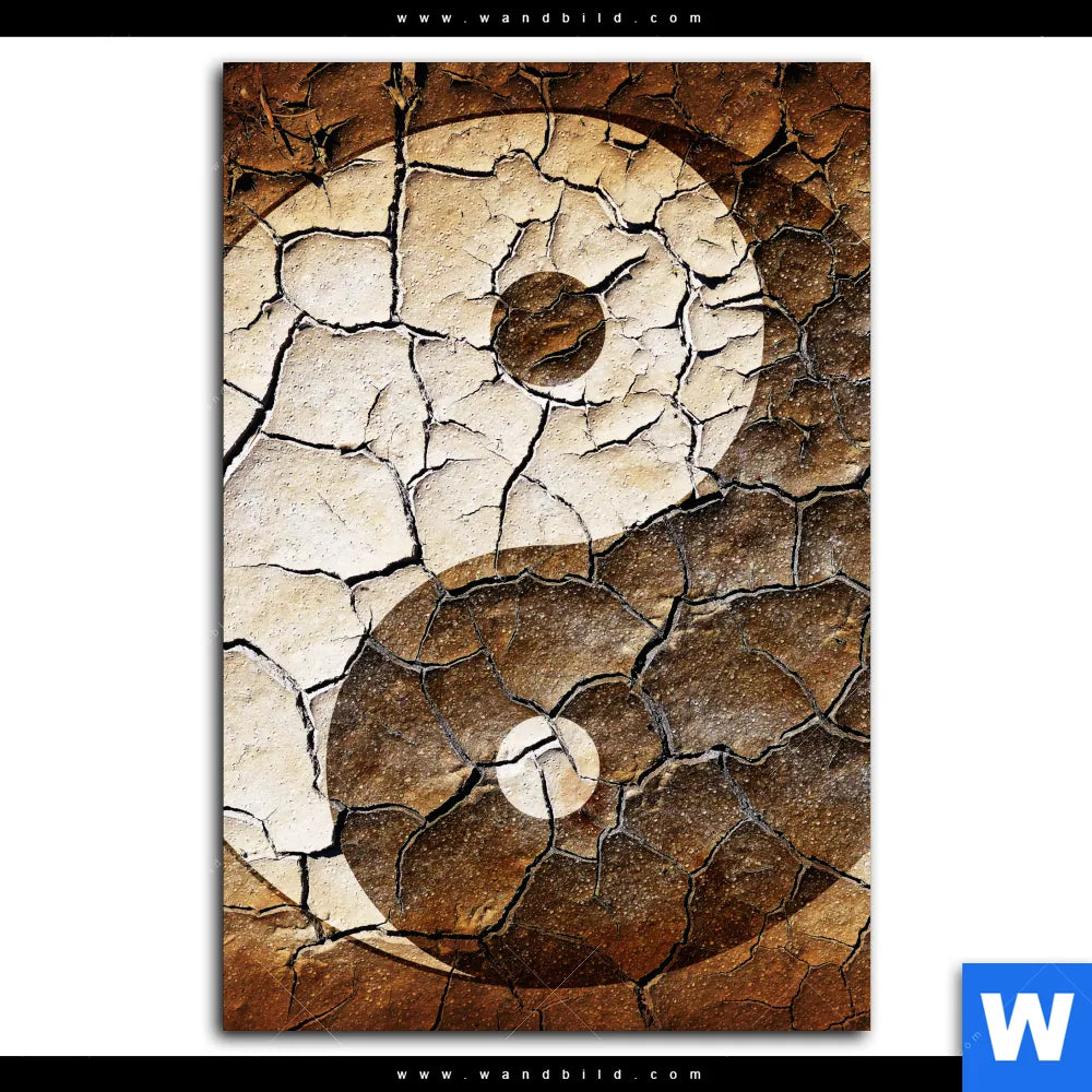 Aluminiumbild gebürstet | Yin Yang auf rissiger Erde | Hochformat