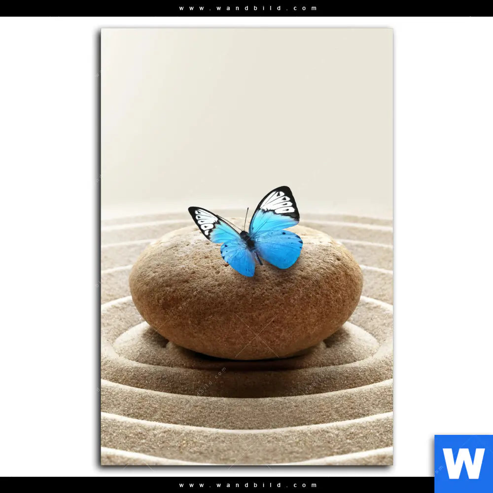 Aluminiumbild gebürstet | Zen Stein mit Schmetterling | Hochformat