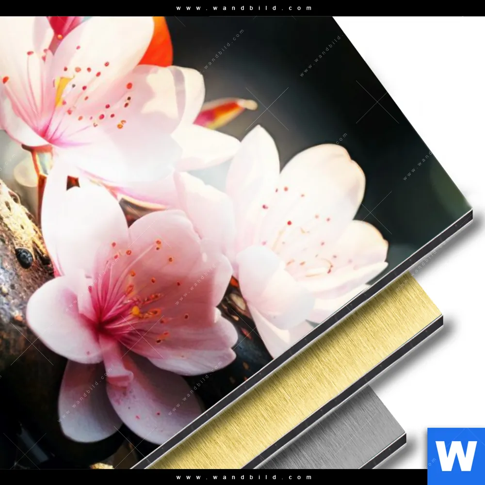 Blumen - Botanik, Buddha - Feng Shui Aluminiumbild mit metallischem Effekt inkl. vormontiertem Rückrahmen