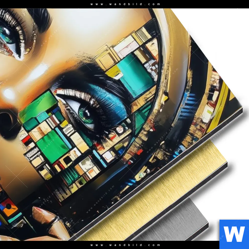 Aluminiumbild gebürstet | Zoe - Mosaikgesicht im Großstadtlicht | Hochformat