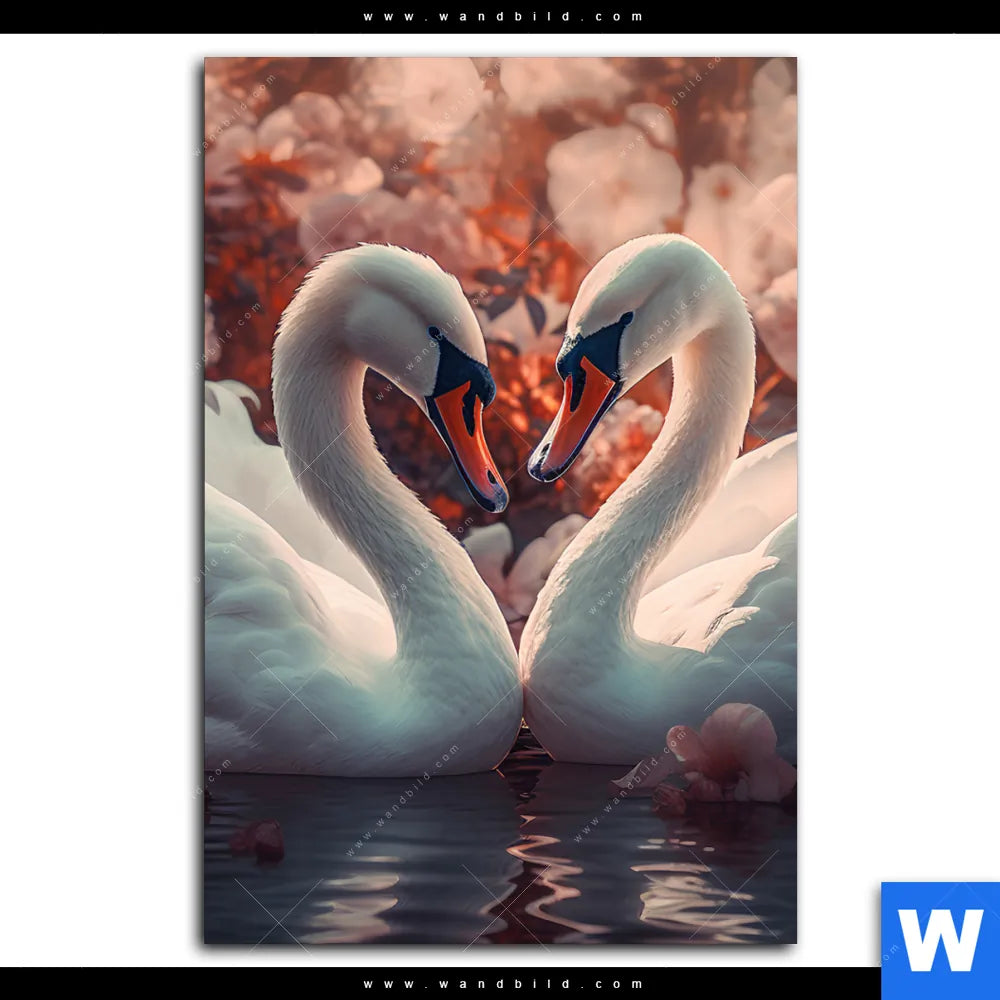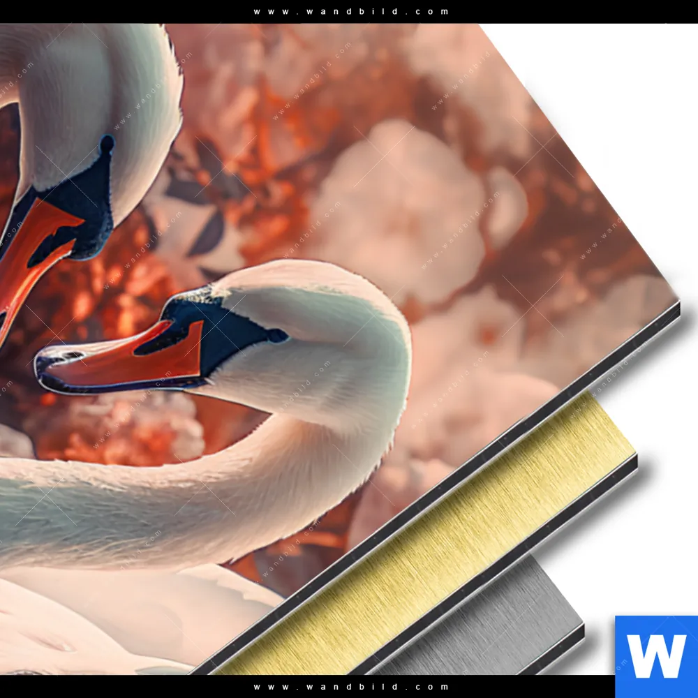 Aluminiumbild gebürstet | Zwei Schwäne im Wasser | Hochformat