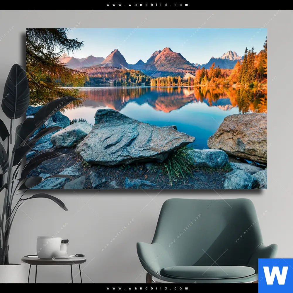 Leinwandbild | Abendszene mit Bergen und See | Querformat