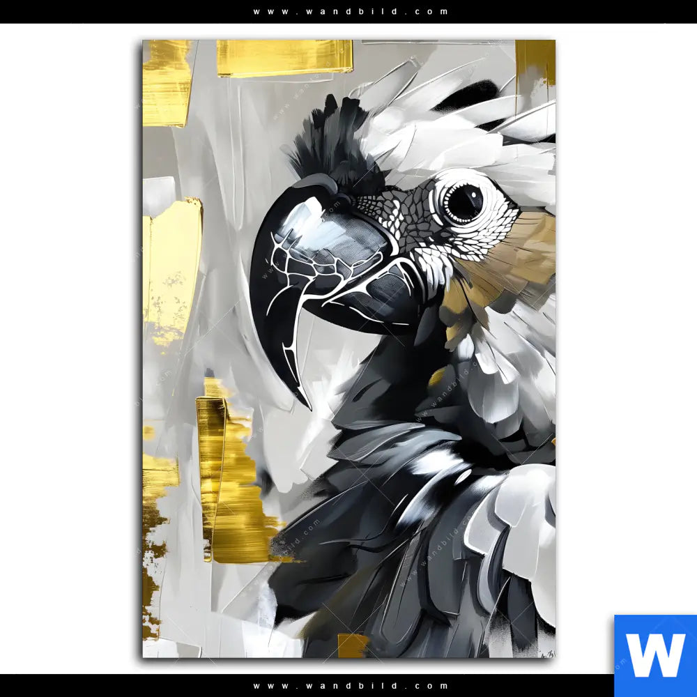 Leinwandbild | Abstrakter Papagei mit Gold | Hochformat