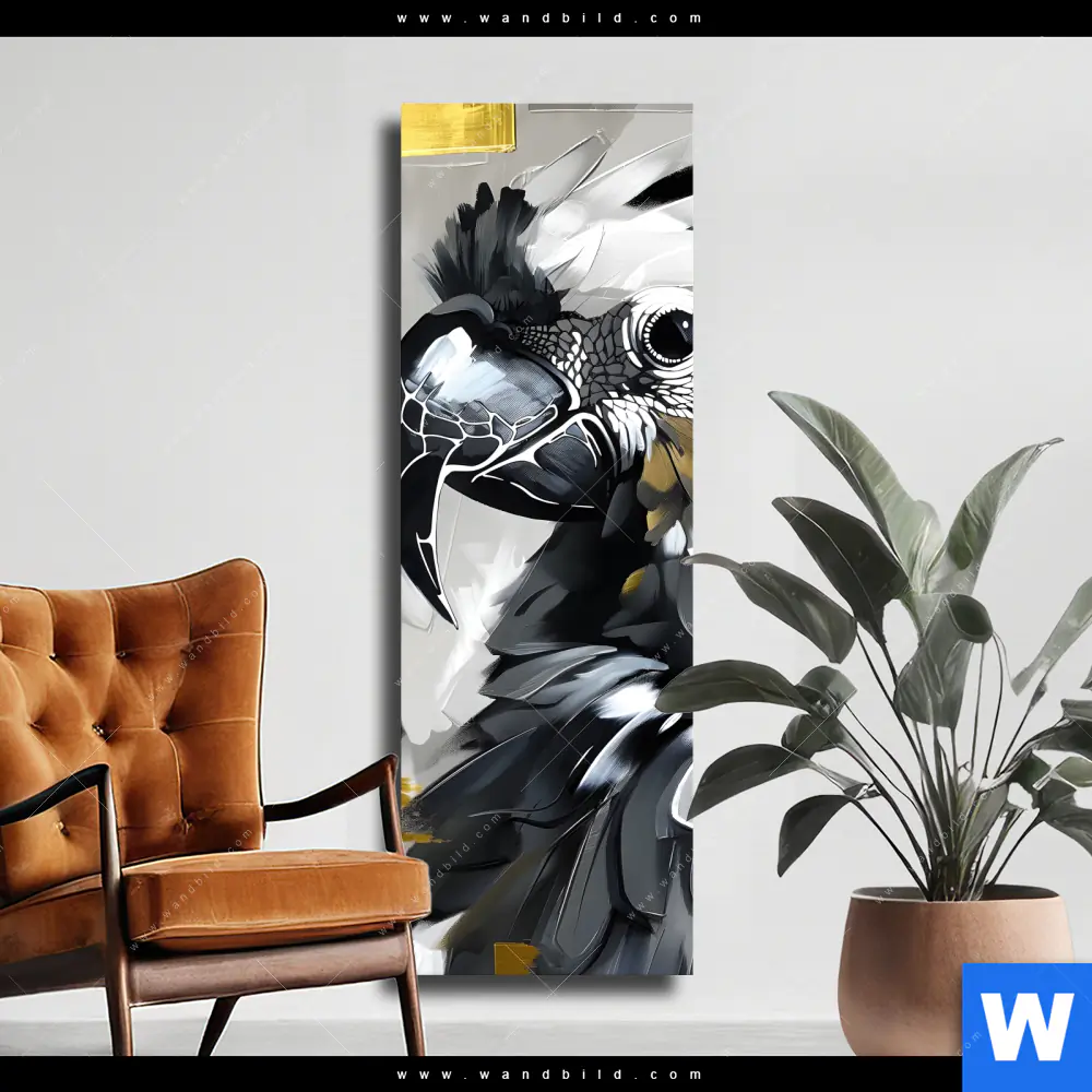 Leinwandbild | Abstrakter Papagei mit Gold | Schmal