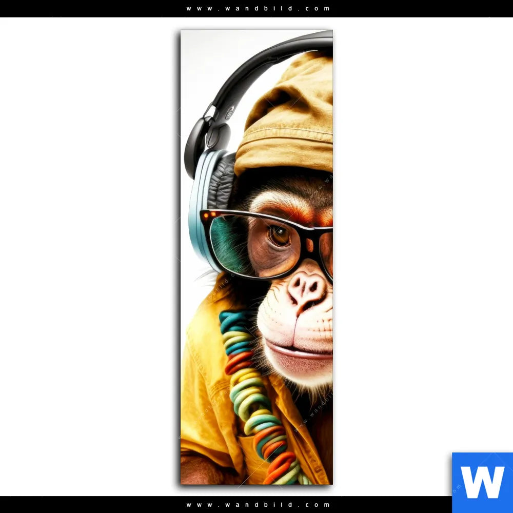 Leinwandbild | Affe mit Kopfhörern & Brille | Schmal