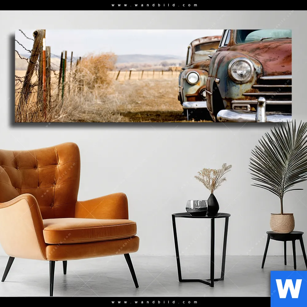 Leinwandbild | Alte rostige Autos | Panorama
