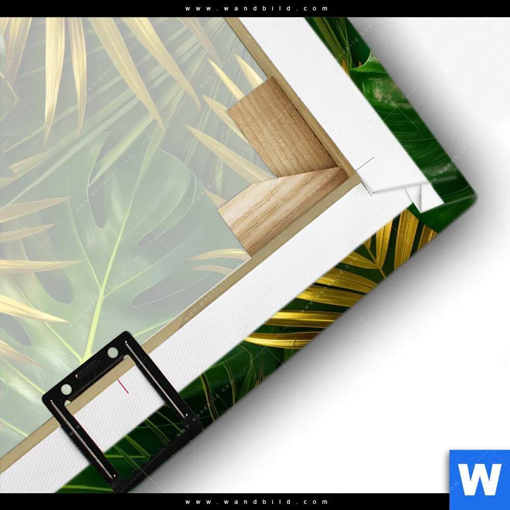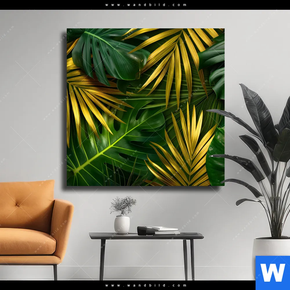 Leinwandbild | Blätter Gold Grün | Quadrat