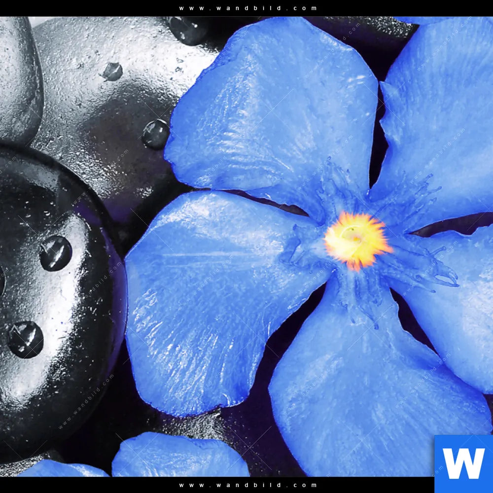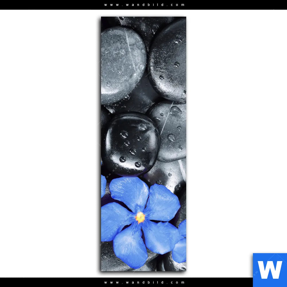 Leinwandbild | Blaue Blume & Graue Steine | Schmal