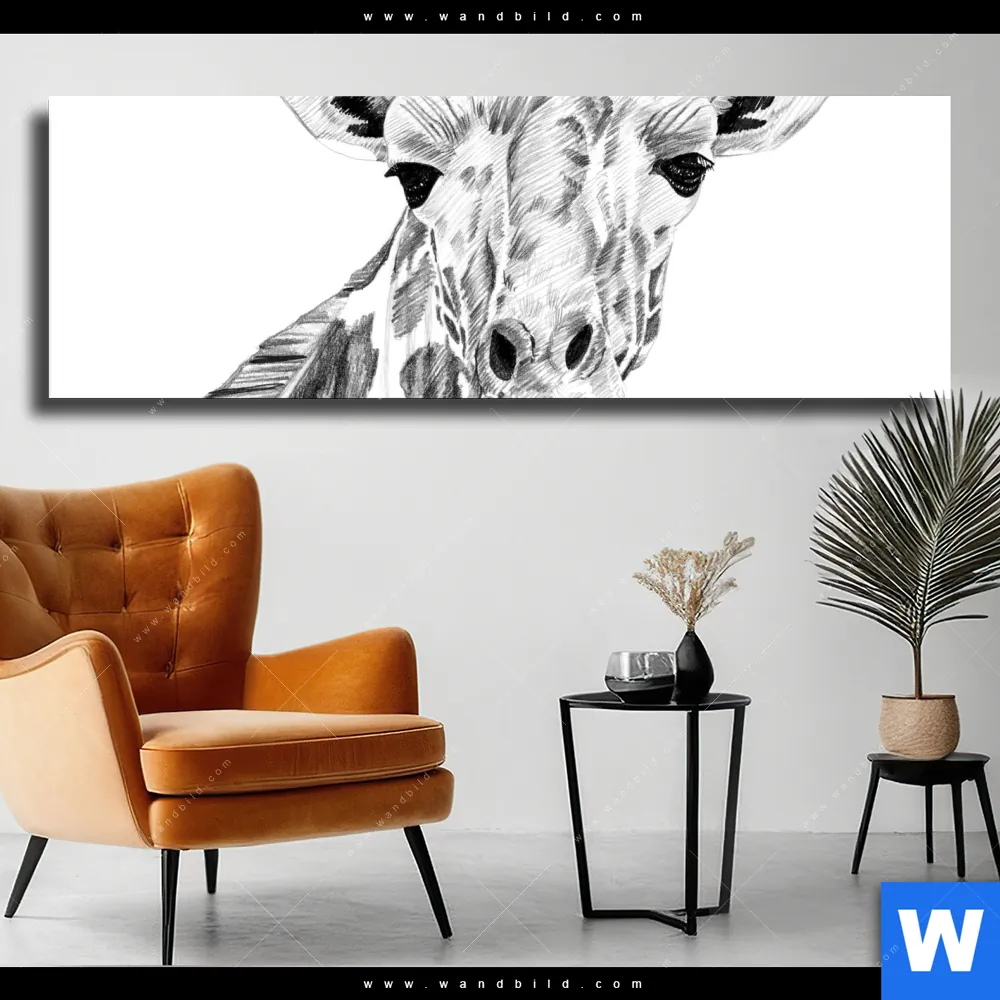Leinwandbild | Bleistiftzeichnung Giraffe | Panorama