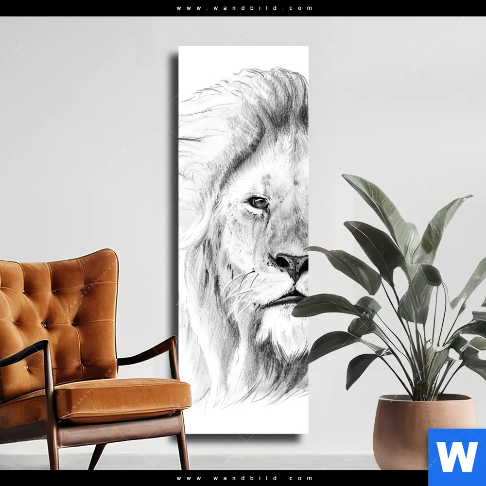 Leinwandbild | Bleistiftzeichnung Löwe | Schmal