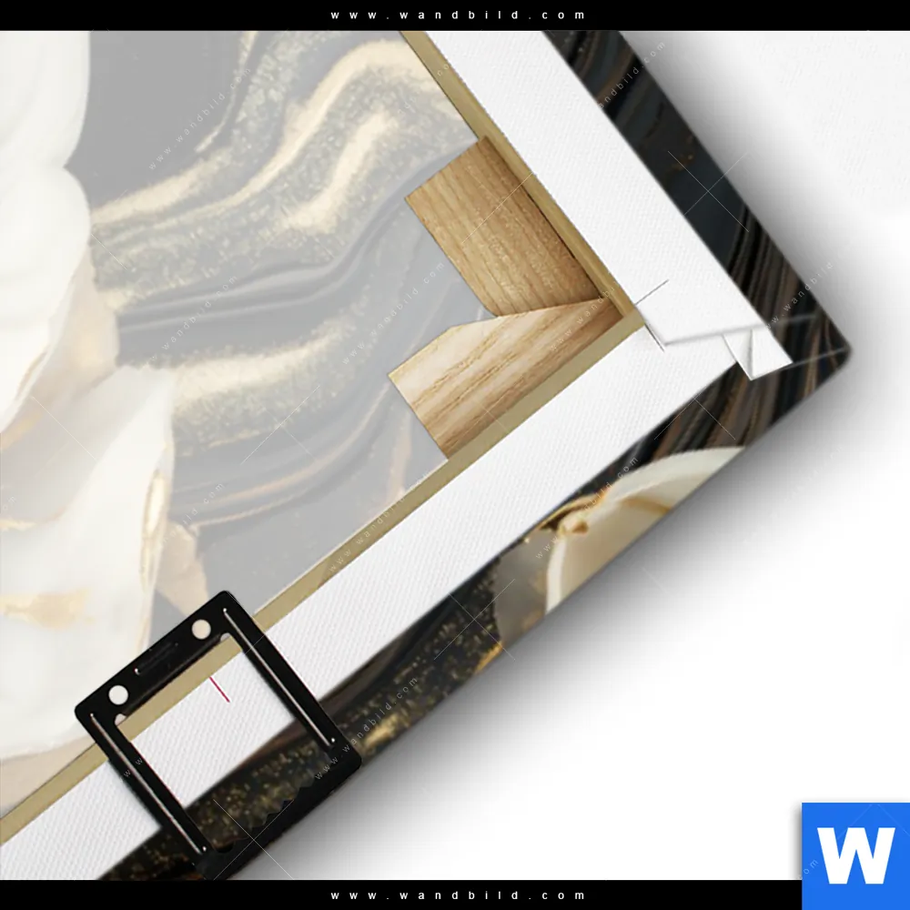 Leinwandbild | Blüten Gold Weiß Schwarz | Panorama
