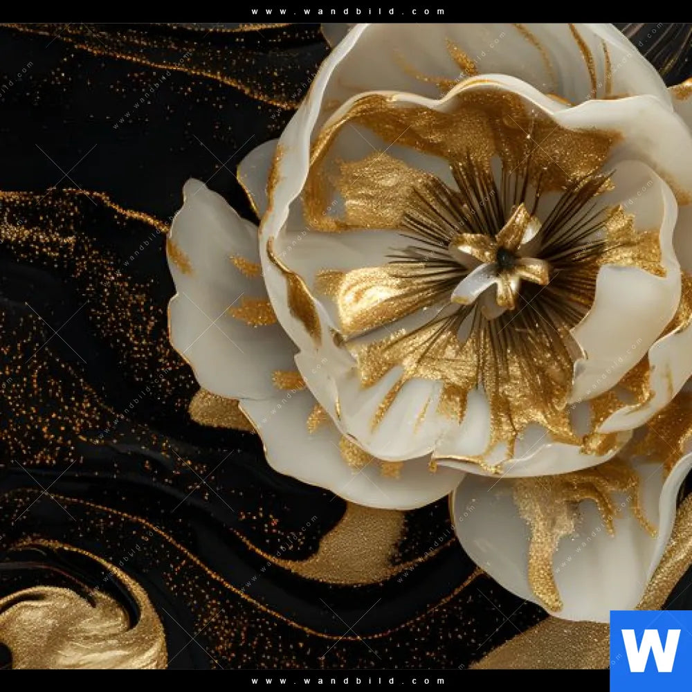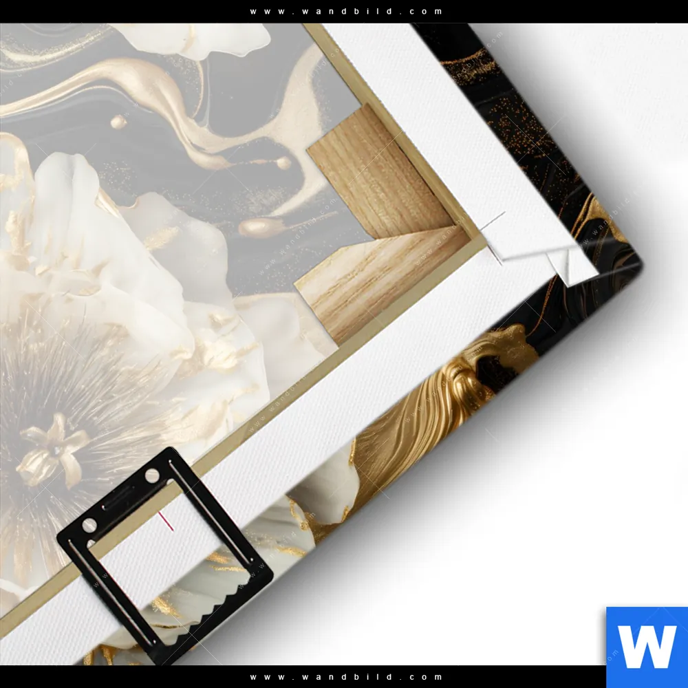 Leinwandbild | Blüten Gold Weiß Schwarz | Quadrat