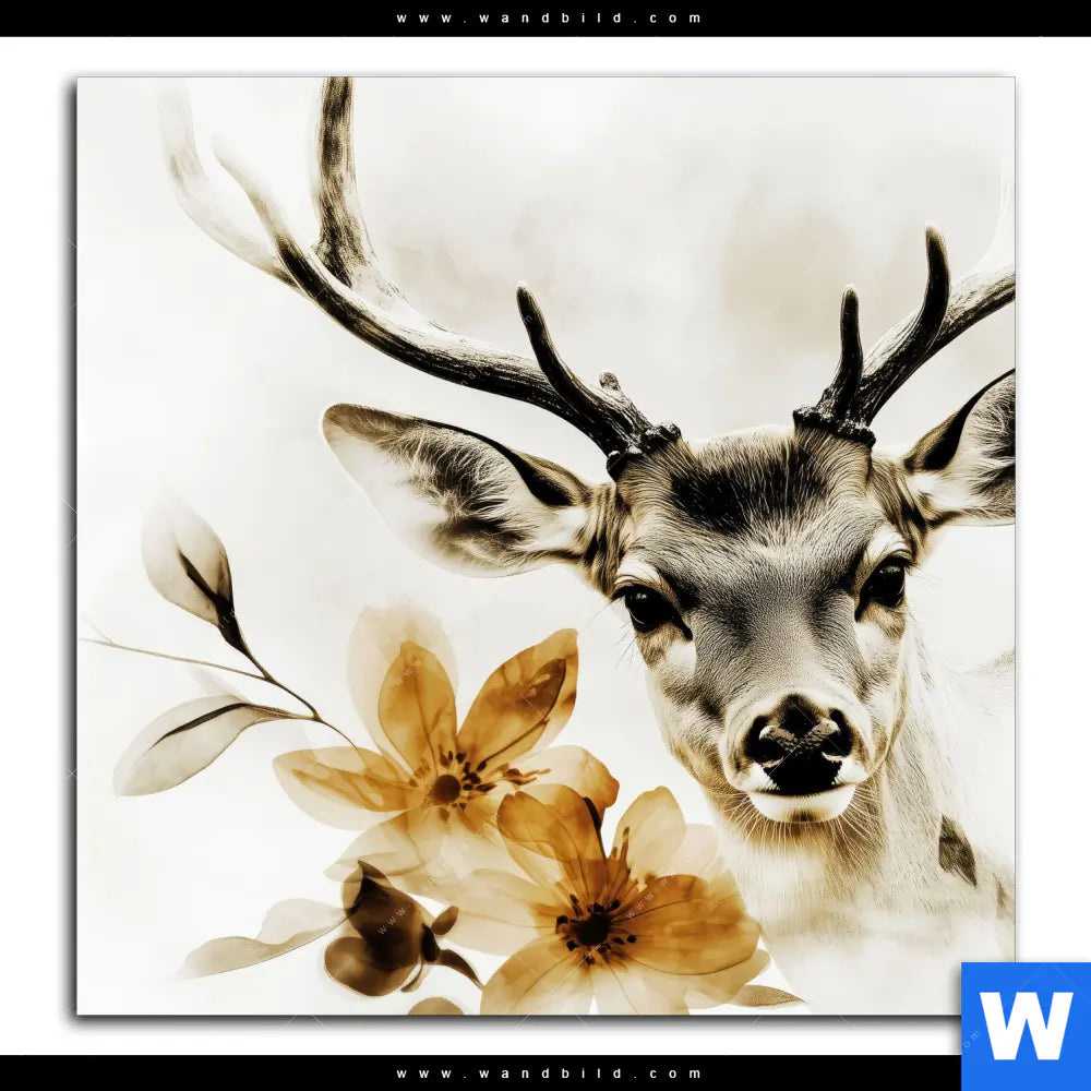 Leinwandbild | Blütenpracht trifft Geweih | Quadrat