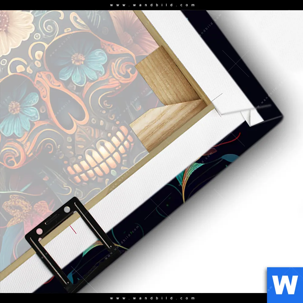 Leinwandbild | Blumenschädel schwarz | Quadrat