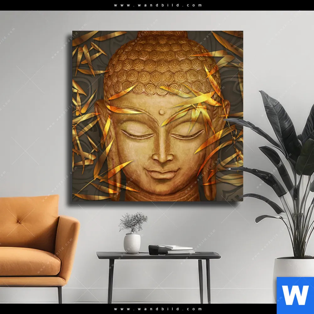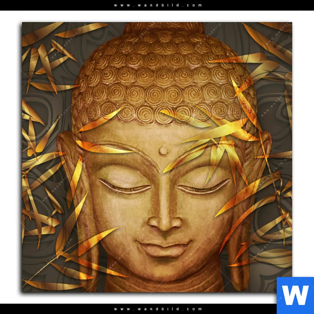 Leinwandbild | Buddha & Bambus in Gold | Quadrat
