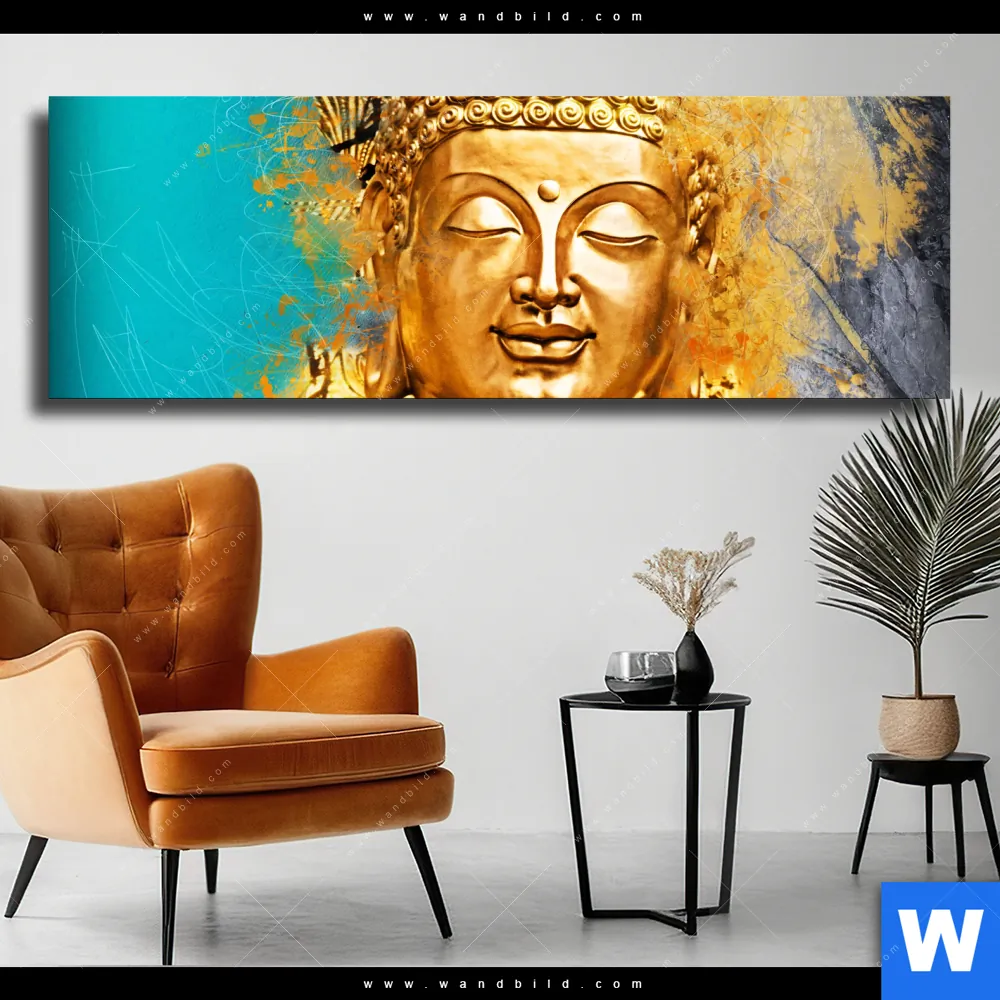 Leinwandbild | Buddha Gold & Türkis | Panorama