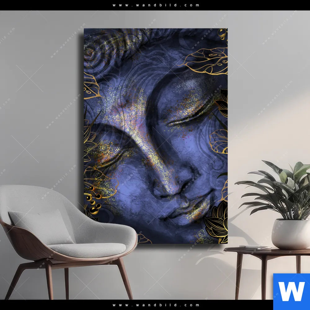 Leinwandbild | Buddha in Gold & Blau | Hochformat