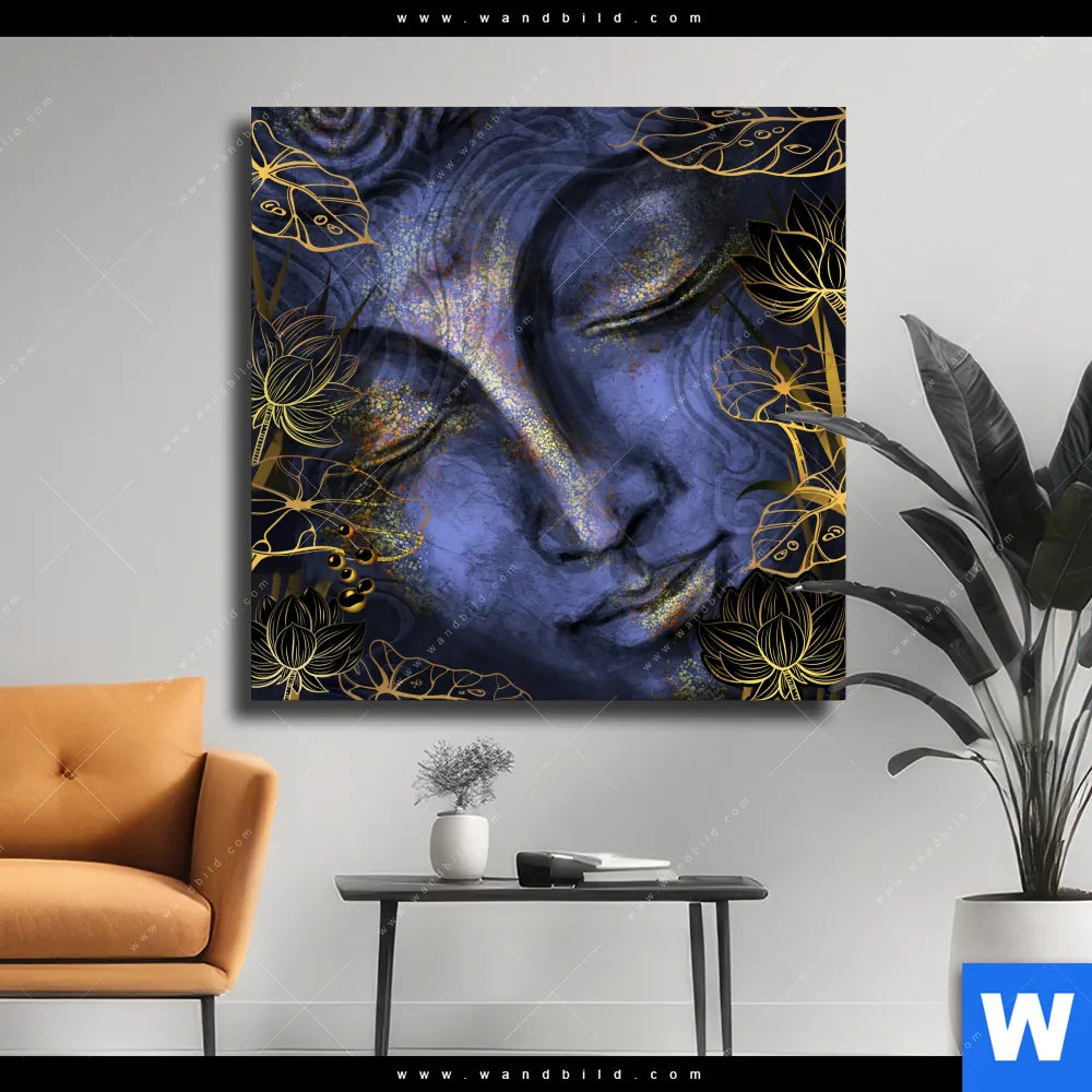 Leinwandbild | Buddha in Gold & Blau | Quadrat