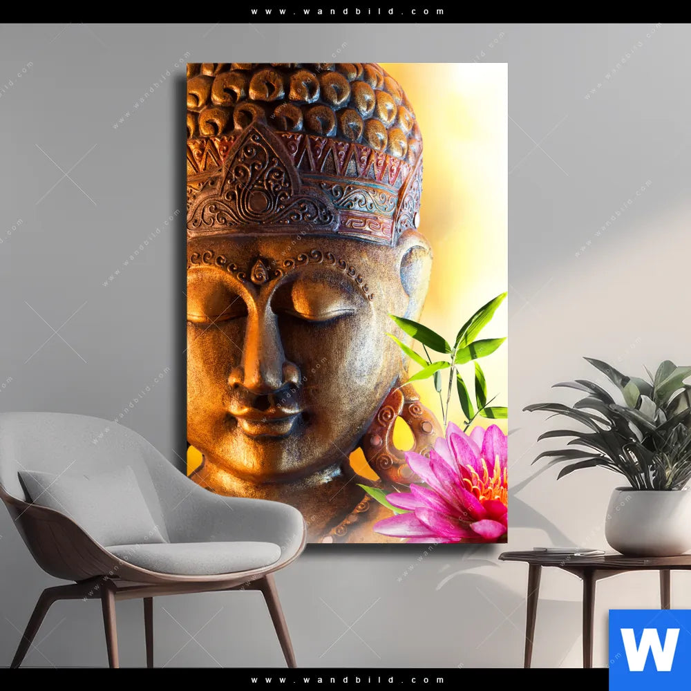 Leinwandbild | Buddha Kopf & Seerose | Hochformat