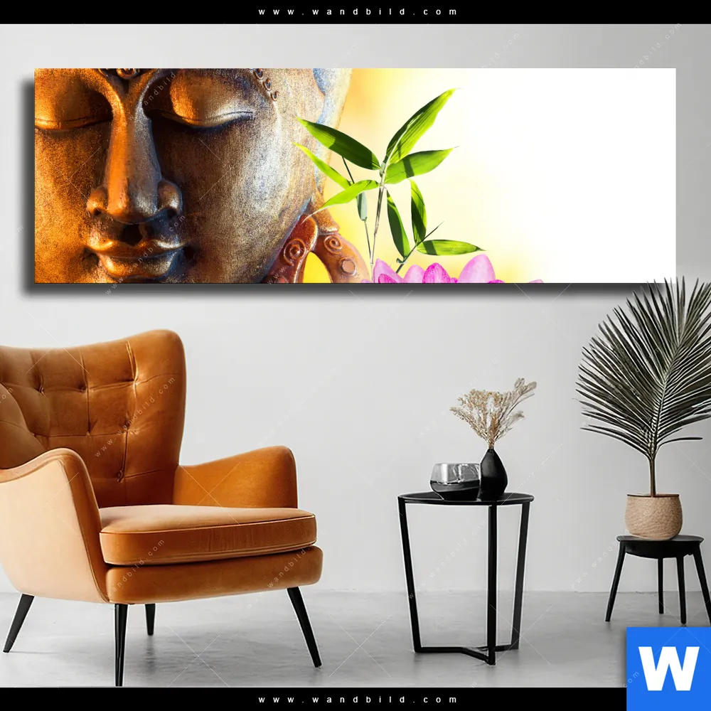 Leinwandbild | Buddha Kopf & Seerose | Panorama