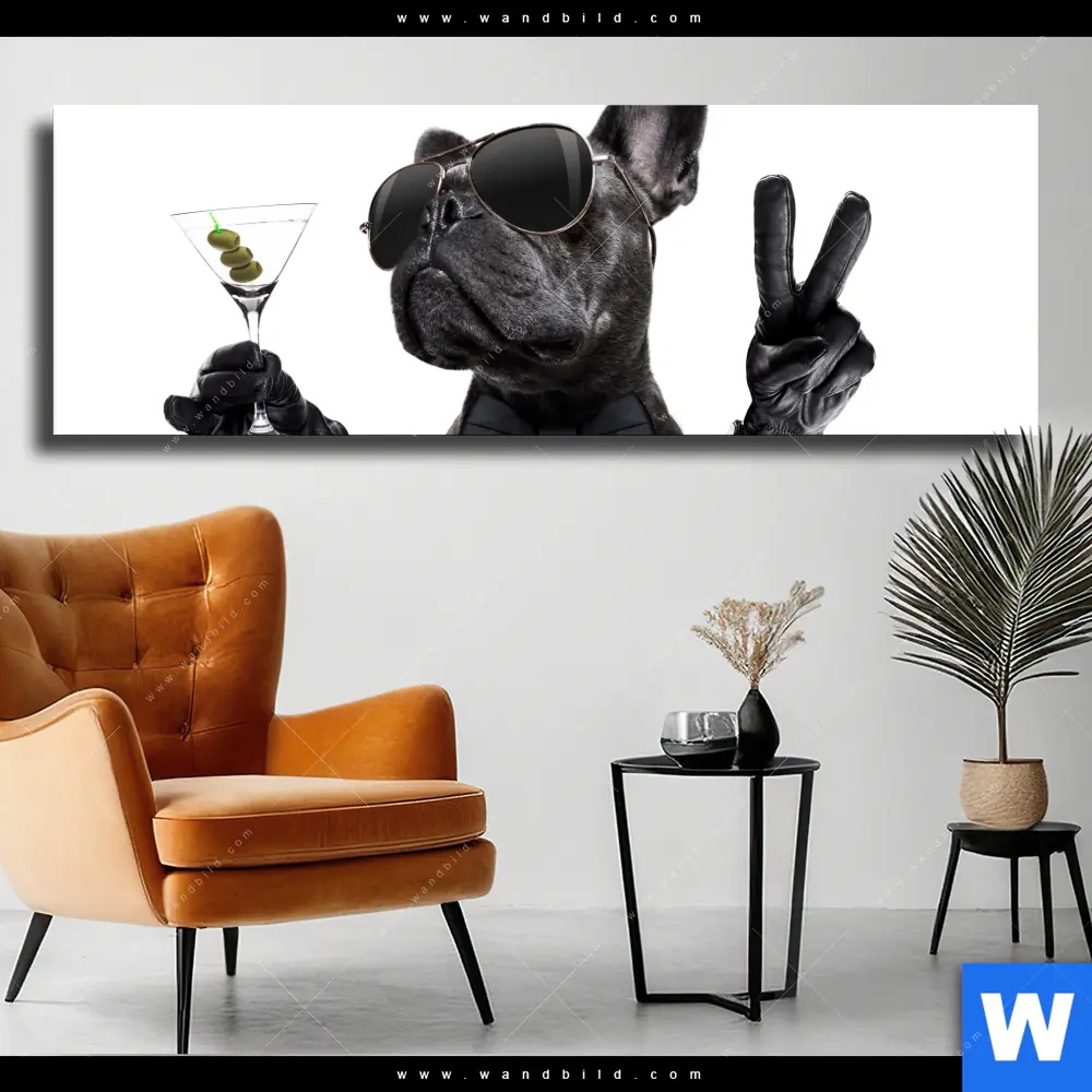 Leinwandbild | Bulldogge mit Martini | Panorama