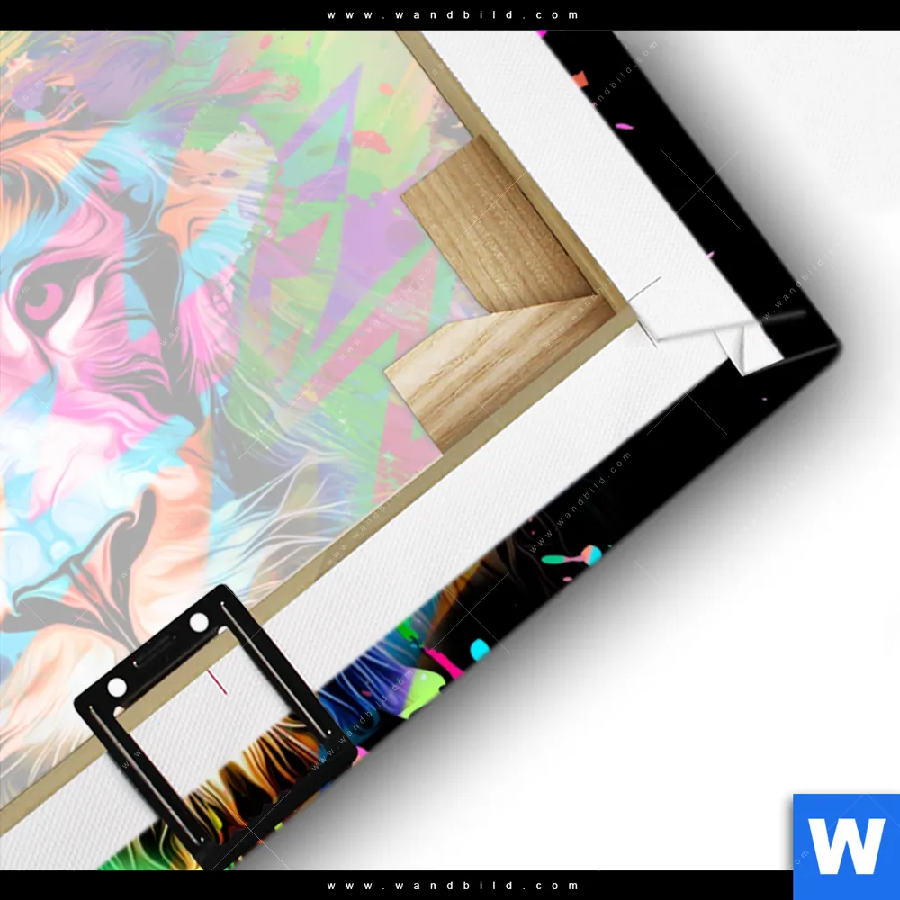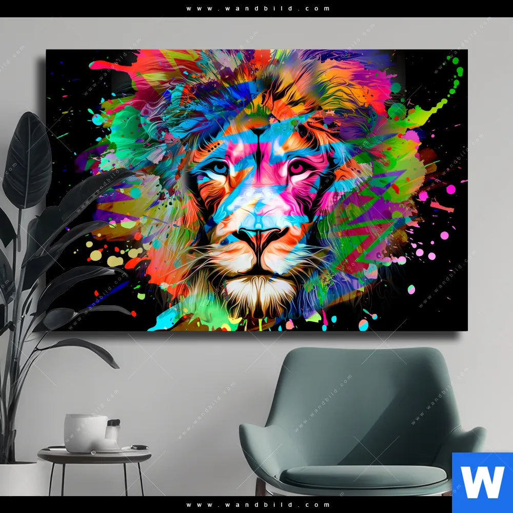 Leinwandbild | Bunter Löwe Schwarz | Querformat