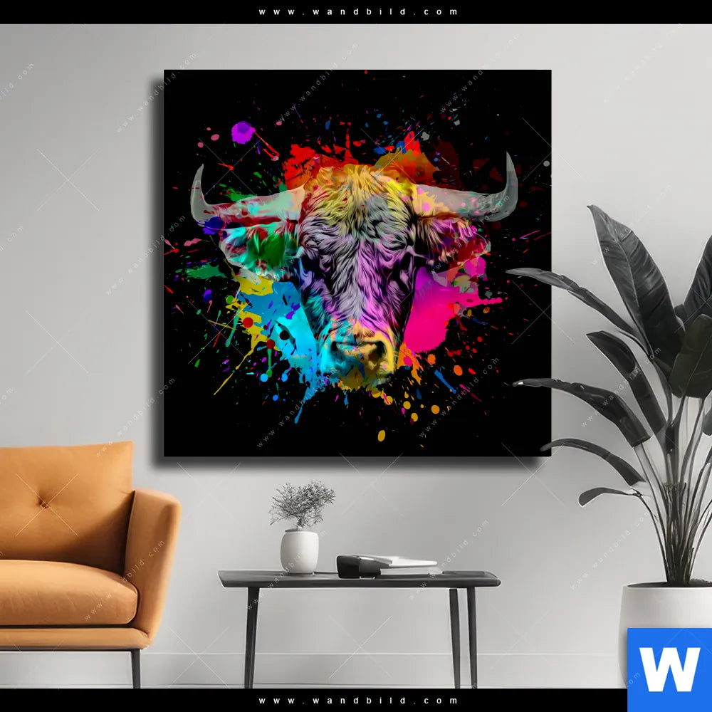 Leinwandbild | Bunter Stier Schwarz | Quadrat