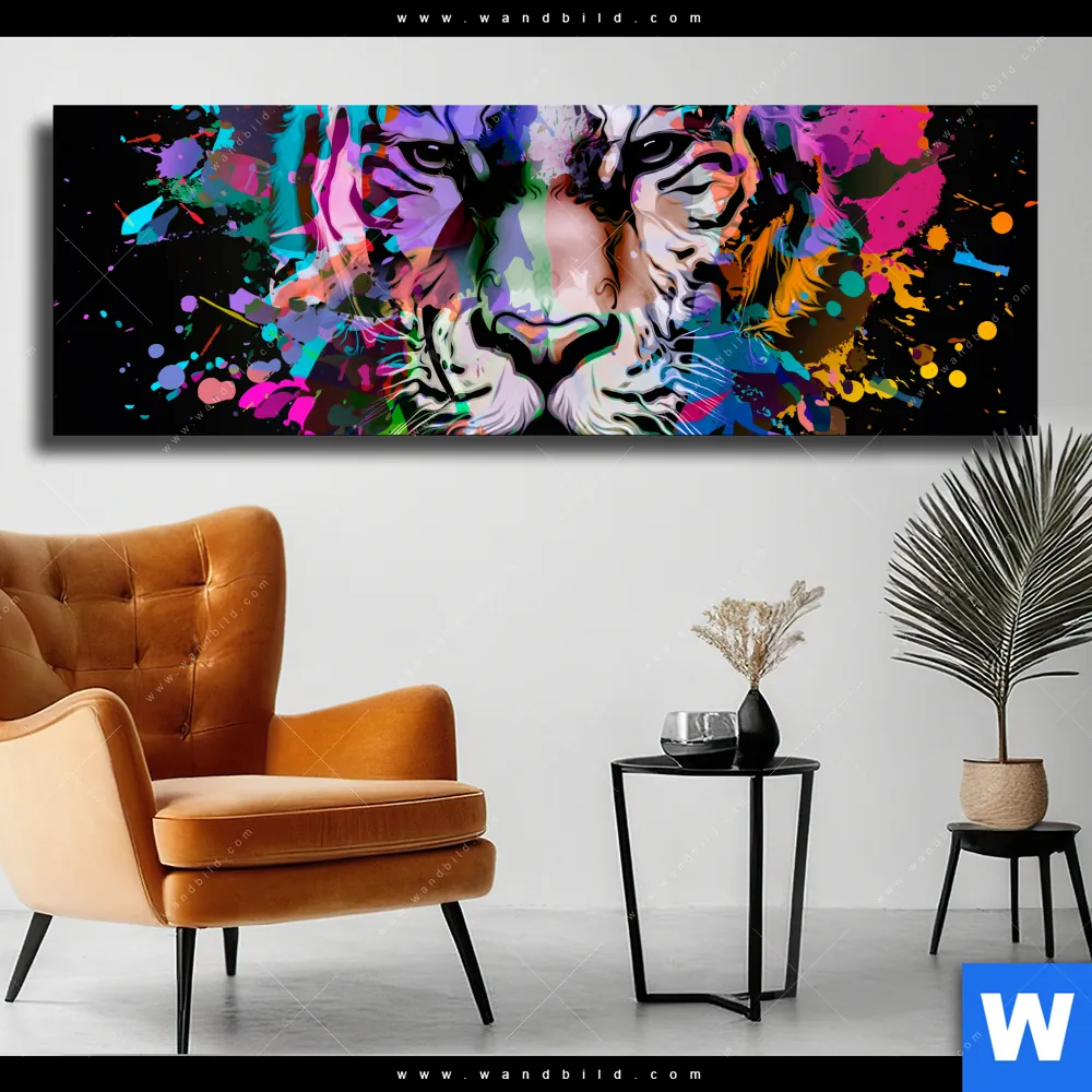 Leinwandbild | Bunter Tiger Schwarz | Panorama