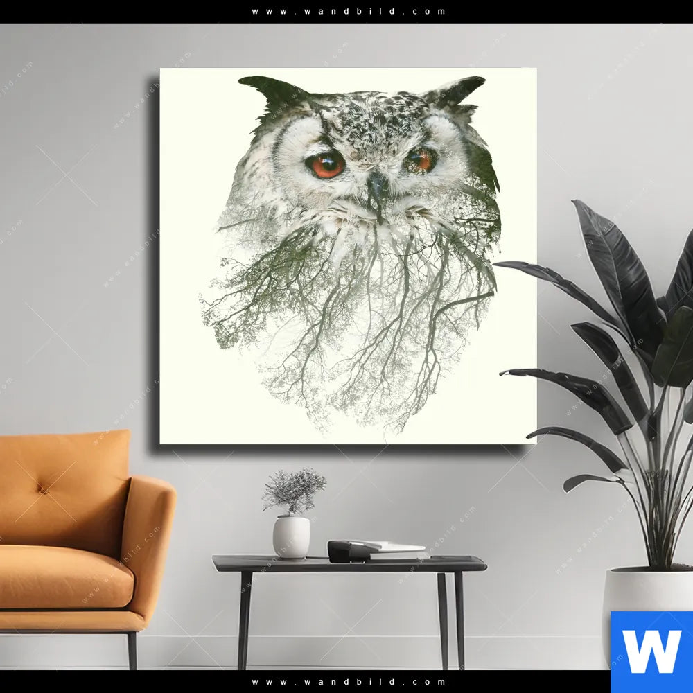 Leinwandbild | Eule & Wald No.1 | Quadrat