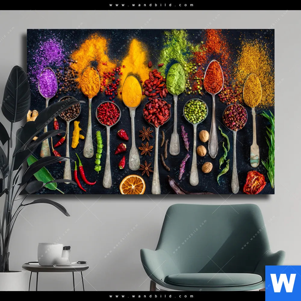 Leinwandbild | Exotische Gewürze auf Löffeln | Querformat