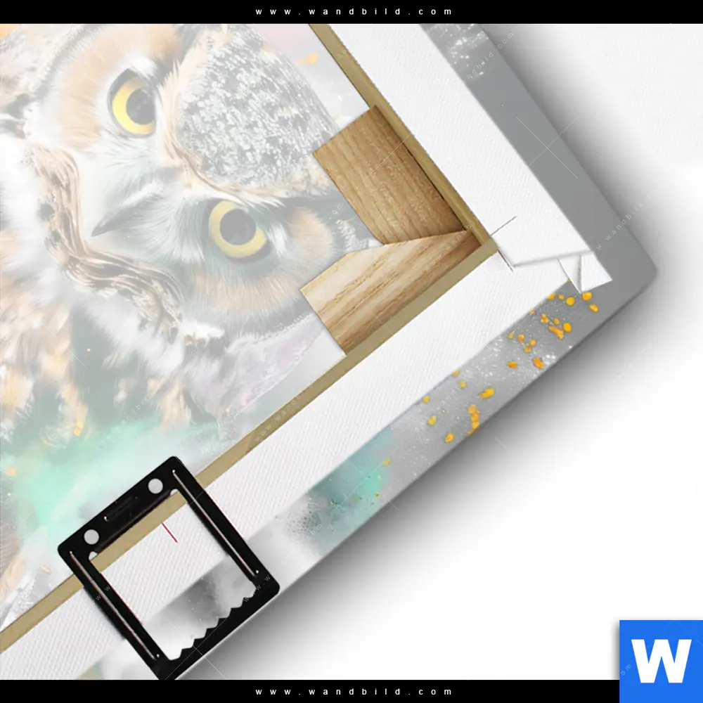 Leinwandbild | Farbenexplosion mit Eule | Hochformat