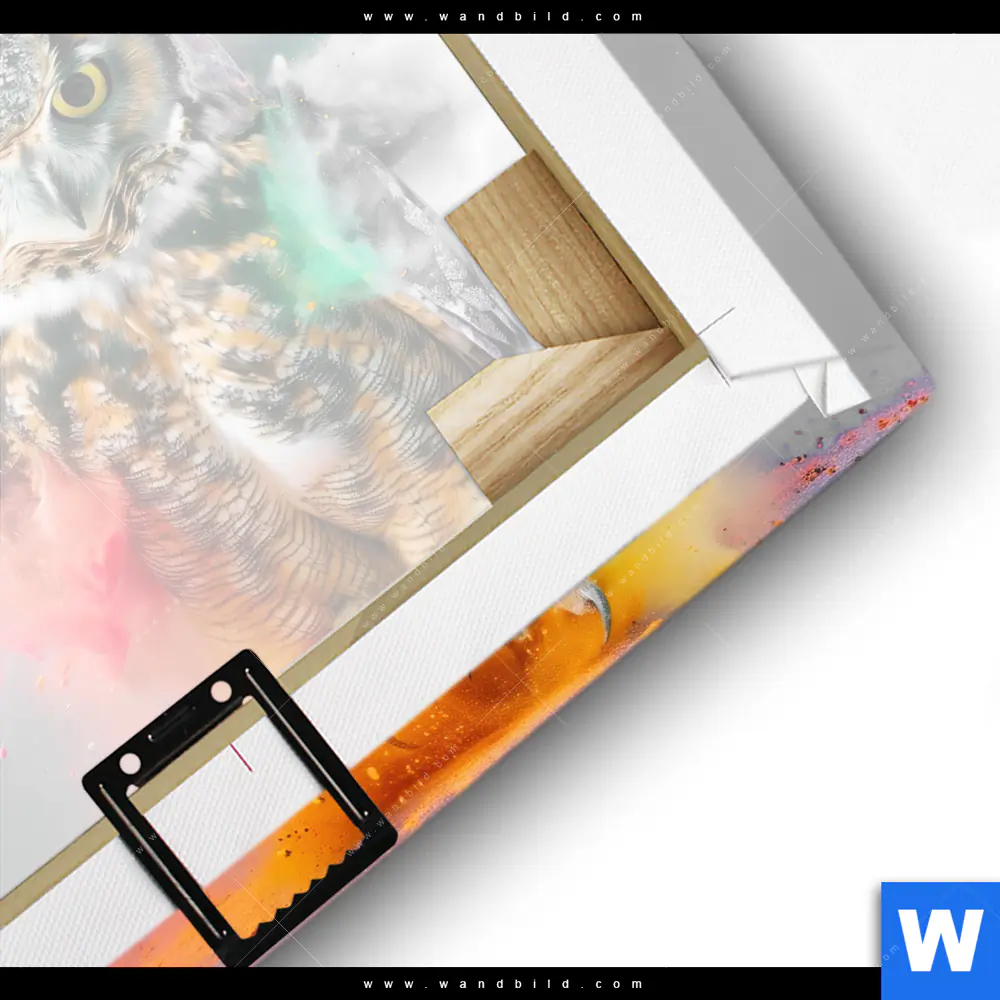 Leinwandbild | Farbenexplosion mit Eule | Quadrat