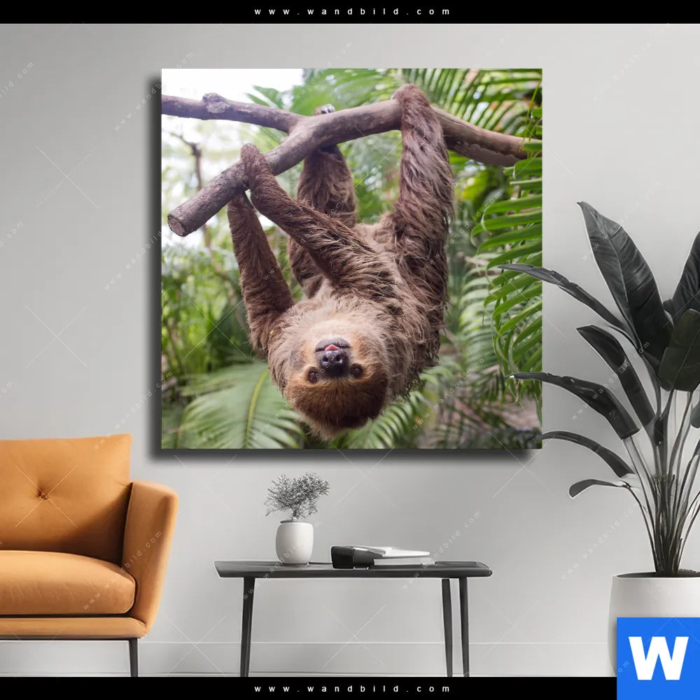 Leinwandbild | Faultier streckt Zunge raus | Quadrat