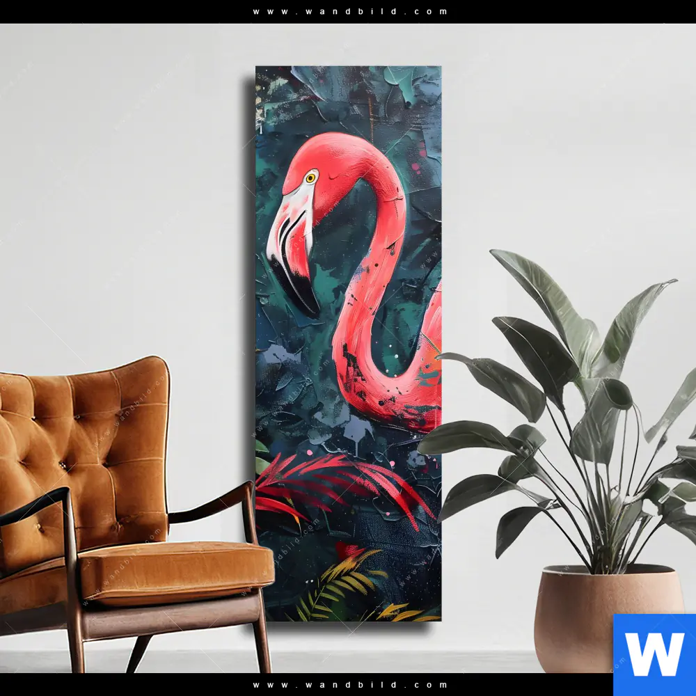 Leinwandbild | Flamingo - Dschungel Eleganz | Schmal
