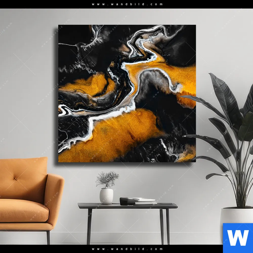 Leinwandbild | Fluid Art Schwarzes Meer | Quadrat