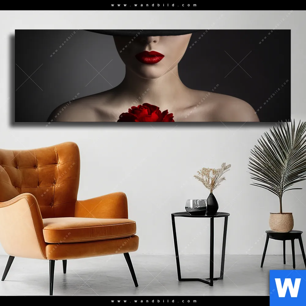 Leinwandbild | Frau mit Hut & Rose | Panorama