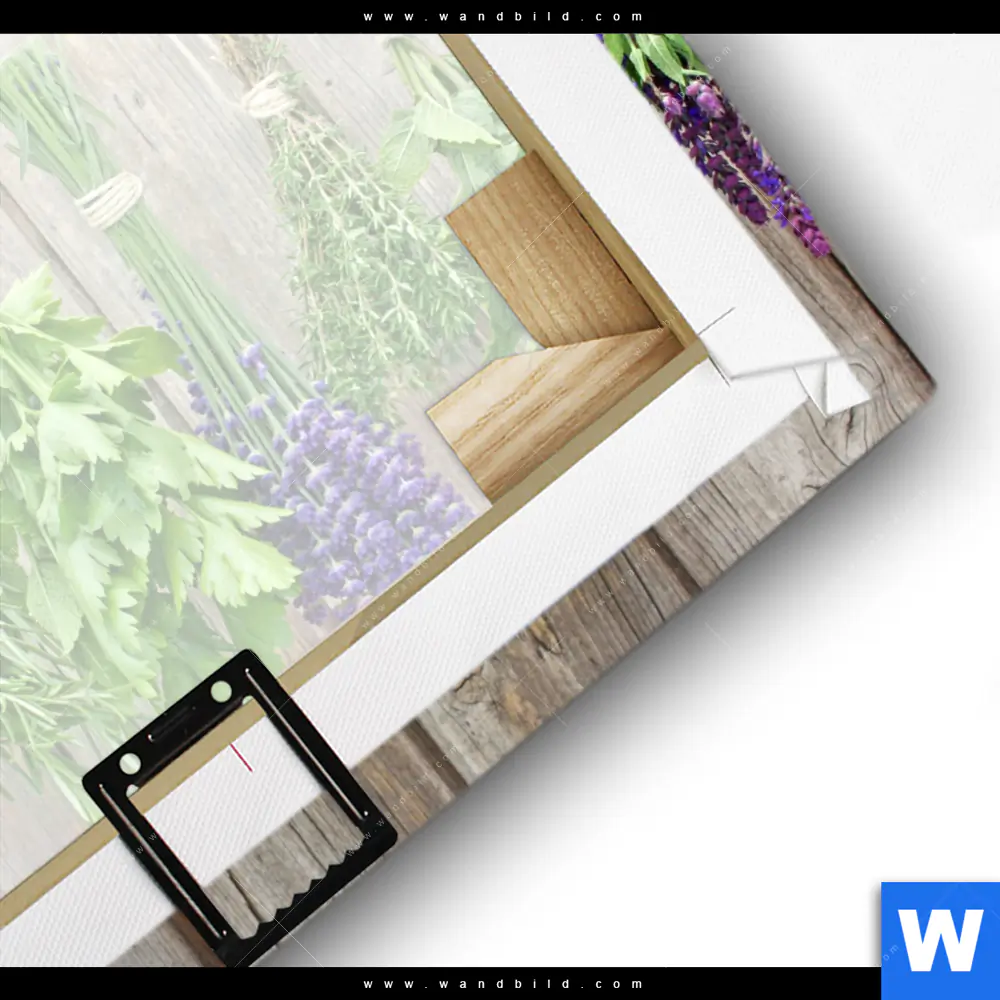 Leinwandbild | Frische Kräuter an Holzstange | Quadrat