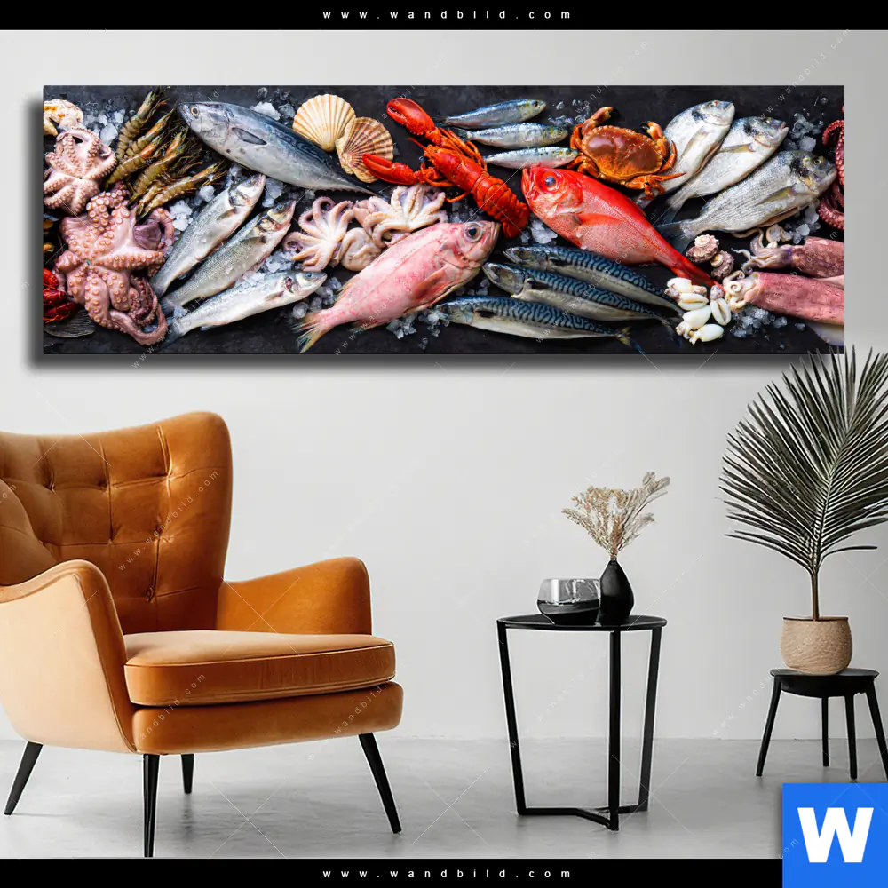 Leinwandbild | Frischer Fisch und Meeresfrüchte | Panorama