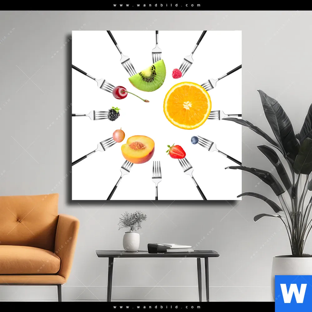 Leinwandbild | Früchte auf Gabeln | Quadrat