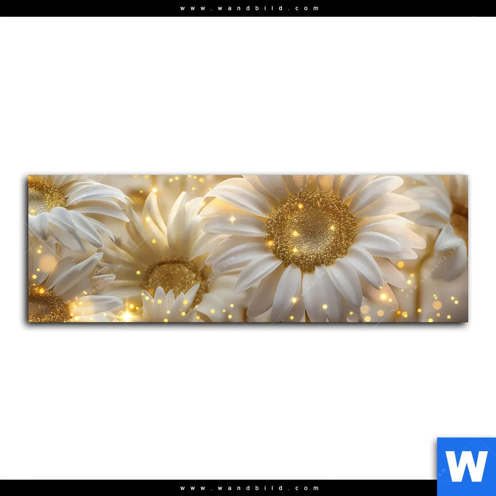 Leinwandbild | Funkelnde Blumen in Gold | Panorama