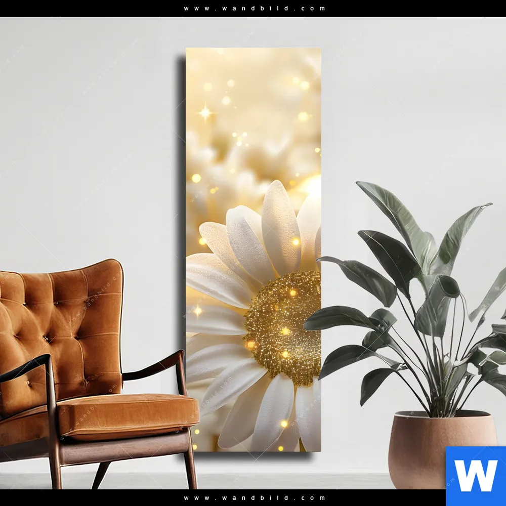 Leinwandbild | Funkelnde Blumen in Gold | Schmal