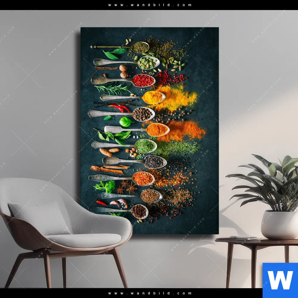 Leinwandbild | Gewürze auf Löffeln | Hochformat