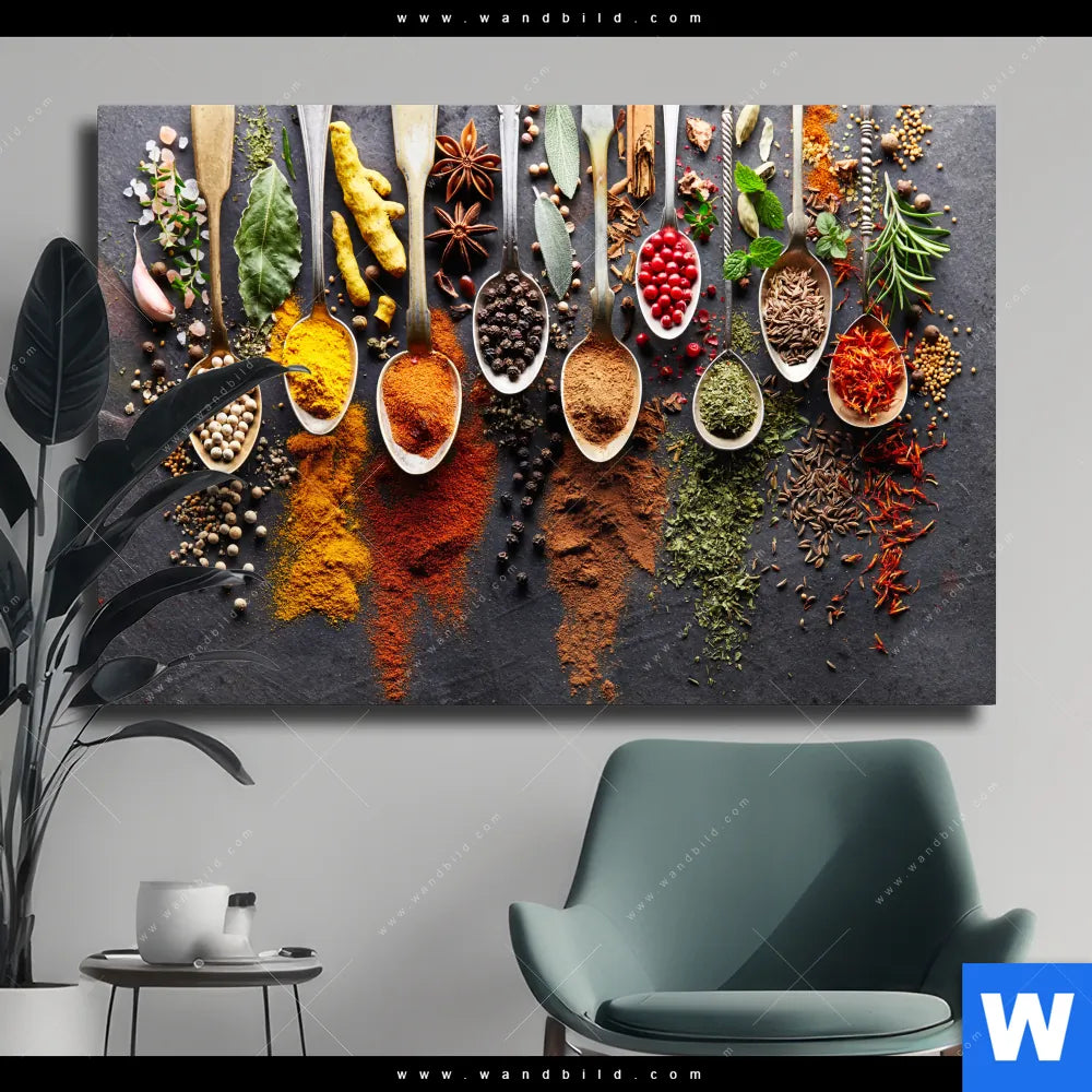 Leinwandbild | Gewürze auf Löffeln No. 2 | Querformat