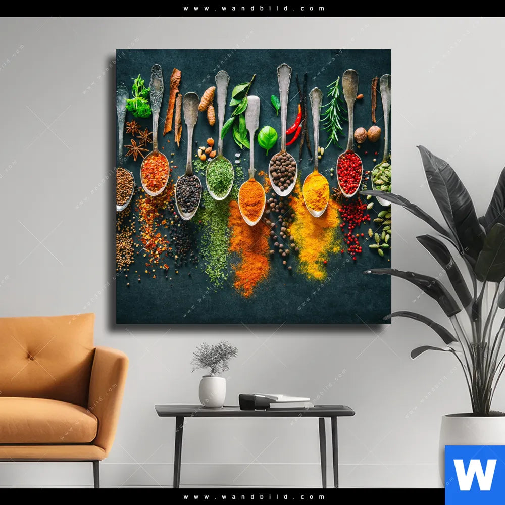 Leinwandbild | Gewürze auf Löffeln | Quadrat