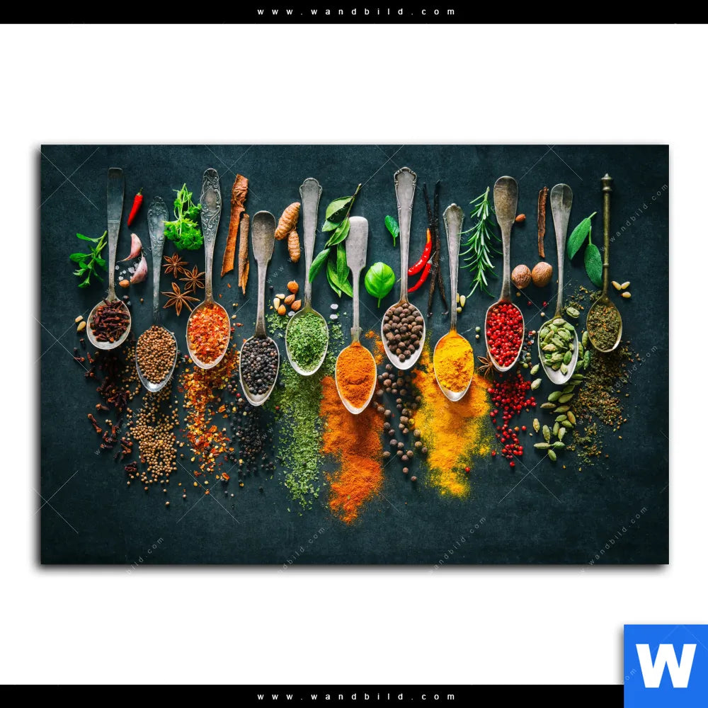 Leinwandbild | Gewürze auf Löffeln | Querformat