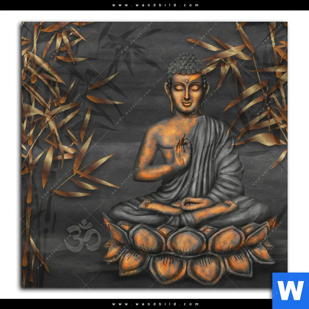 Leinwandbild | Goldener Buddha & Bambus | Quadrat
