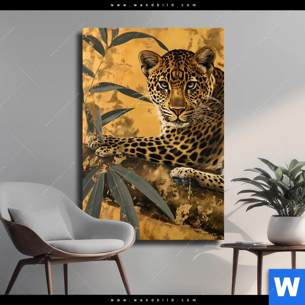 Leinwandbild | Goldener Leopard - Imposanter Jäger | Hochformat