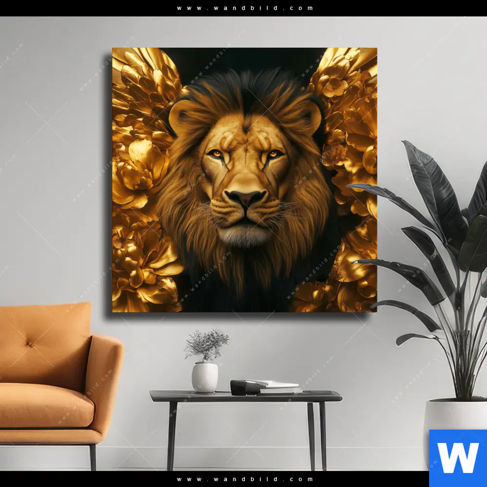 Leinwandbild | Goldener Löwe | Quadrat