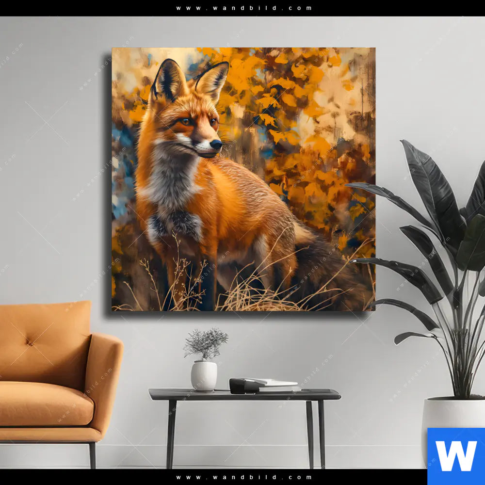 Leinwandbild | Herbstzeit mit Rotfuchs | Quadrat
